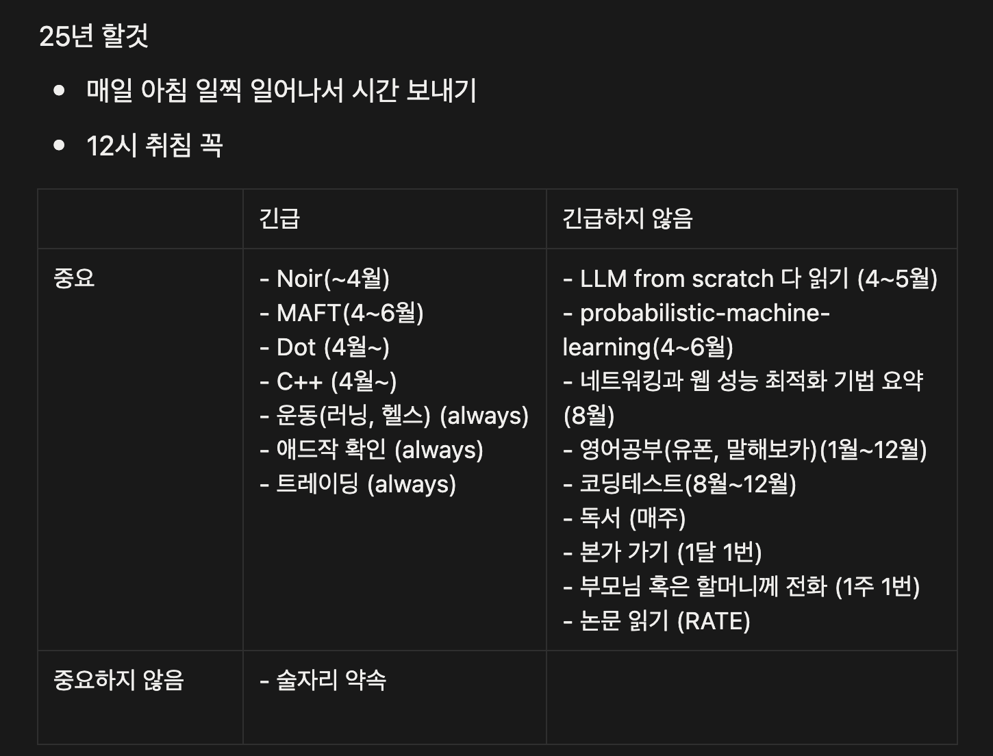 사실 올해 초에 25년의 계획을 잡아놓았었다.