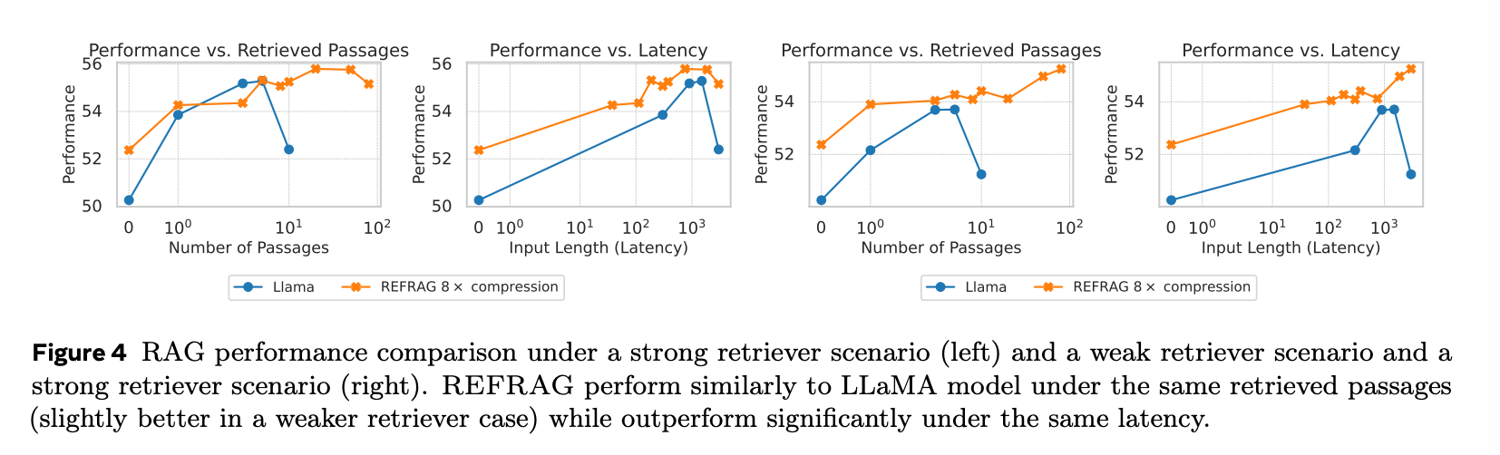 REFRAG's effectiveness shines even more in RAG scenarios.