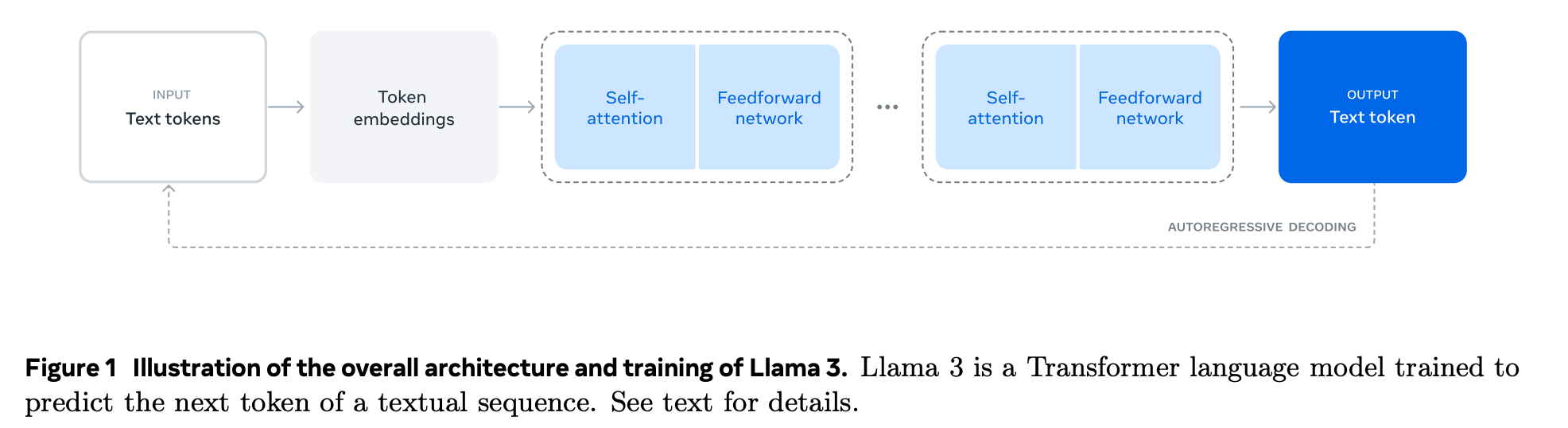 Most modern LLMs (LLaMA, GPT, etc.) use a decoder-only Transformer architecture. This structure receives an input token sequence, processes it through multiple Transformer block layers, and generates tokens.